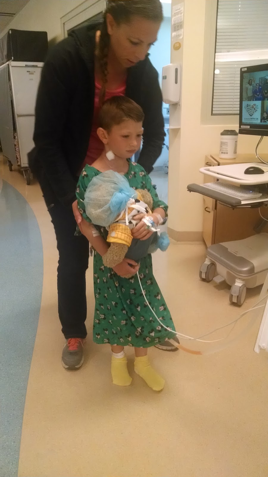 Gage had a rough day, as did his parents. Doctors never could get control of his pain, honestly he was miserable all day. He has been vomiting, eating nothing, at times needed some oxygen, and puffy in the face and belly. He took a couple of very small walks, like 10-15 feet, but that was it. Only time he smiled was for the camera. Hopefully they can take the chest tube out today. They did take out a few IV, and moved him up to 3 West.